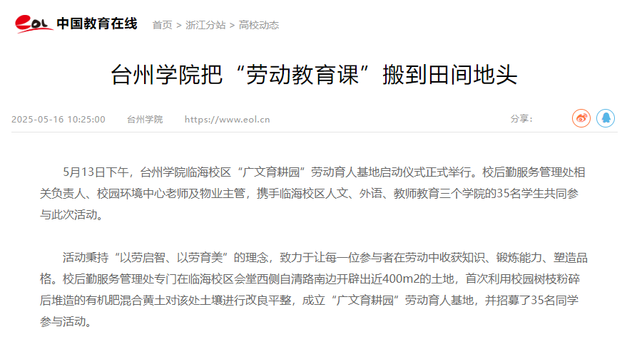 台州学院把“劳动教育课”搬到田间地头