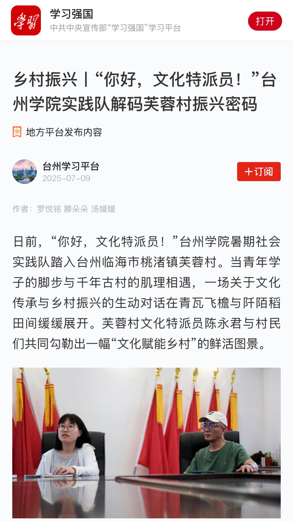 乡村振兴丨“你好,文化特派员!”台州学院实践队解码芙蓉村振兴密码