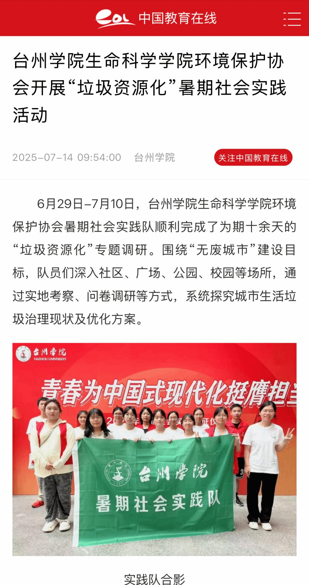 台州学院生命科学学院环境保护协会开展“垃圾资源化”暑期社会实践活动