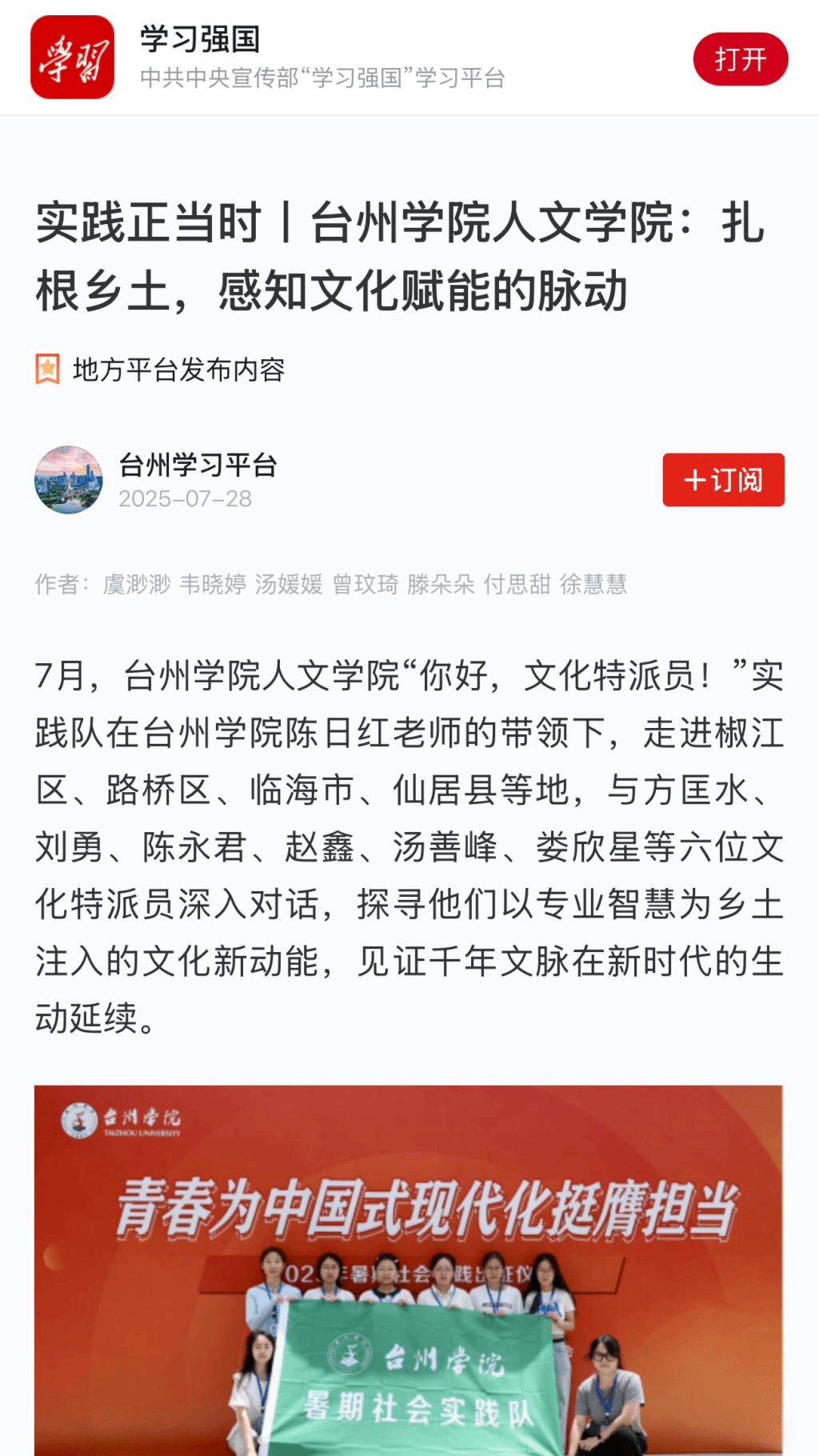 实践正当时丨台州学院人文学院:扎根乡土,感知文化赋能的脉动