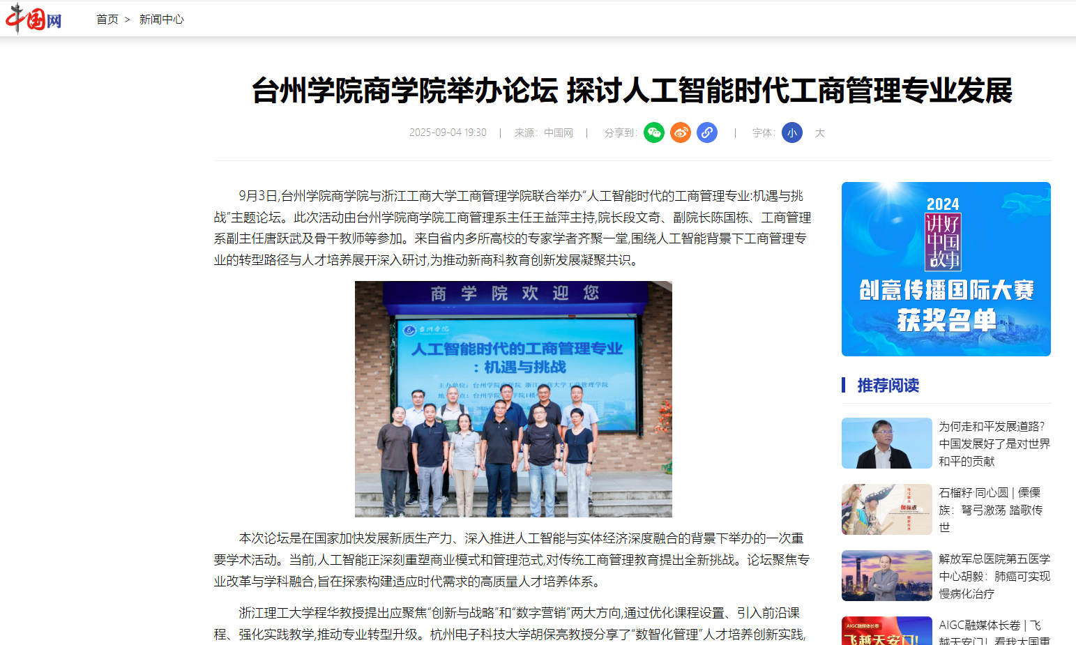 台州学院商学院举办论坛 探讨人工智能时代工商管理专业发展
