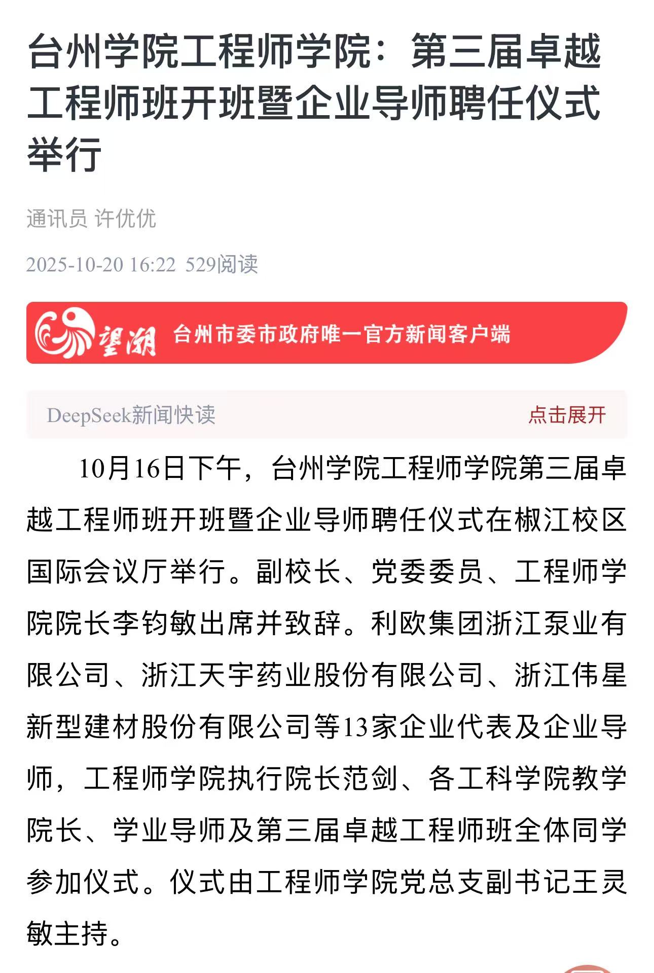 台州学院工程师学院:第三届卓越工程师班开班暨企业导师聘任仪式举行