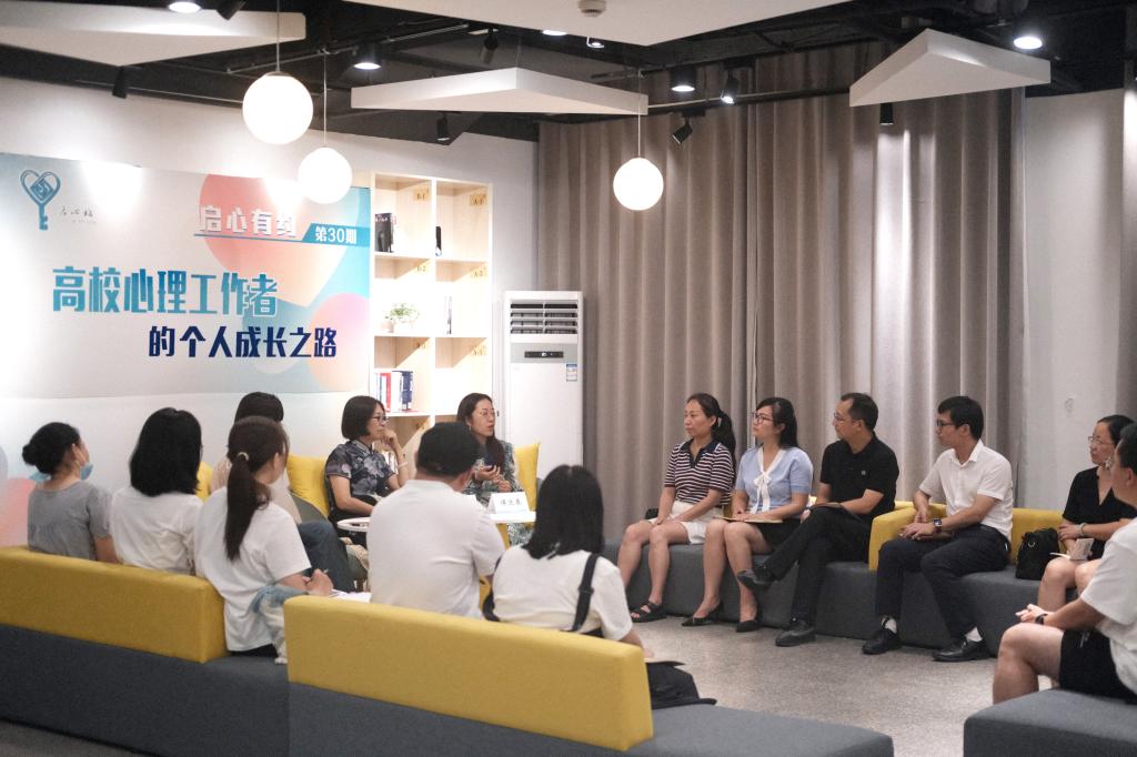为提高我校心理工作者的专业胜任力,促进个人成长,7月3日晚,党委学工部在椒江校区心湖书院组织了以“高校心理工作者的个人成长之路”为主题的第30期“启心有约”活动。东南大学应用心理研究所所长马向真教授、澳门城市大学应用心理学博士侯迎春应邀参加沙龙,近20名教师代表参与交流,校心理中心副主任王蕴瑾主持活动。