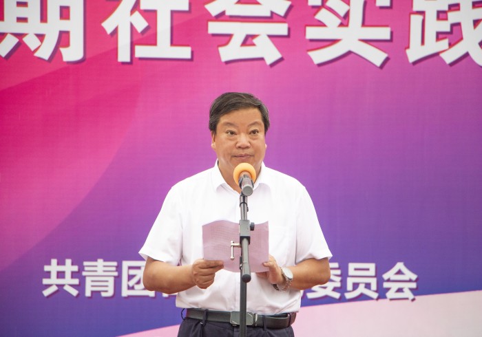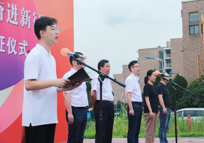 金先龙为本次仪式作动员讲话。他对同学们近年来社会实践活动取得的成绩给予充分肯定,并指出,社会实践是与现实相结合的大思政课,同学们要在社会课堂中受教育、长才干、作贡献,在观察实践中坚定信念听党话、跟党走,以青春力量奋进“两个先行” 。针对本次暑期社会实践,金先龙提出了三点希望和要求:一是用青春的激情奏响“清澈的爱、只为中国”的时代强音;二是用青春的行动践行“请党放心、强国有我”的铮铮誓言;三是用青春的斗志背起“服务社会、砥砺奉献”的使命担当。他表示,当代青年要在实践中用脚步丈量祖国大地,用眼睛发现中国精神,用耳朵倾听人民呼声,用内心感应时代脉搏,做有理想、敢担当、能吃苦、肯奋斗的新时代好青年,以实际行动谱写“我在窗口写青春”的华彩篇章。