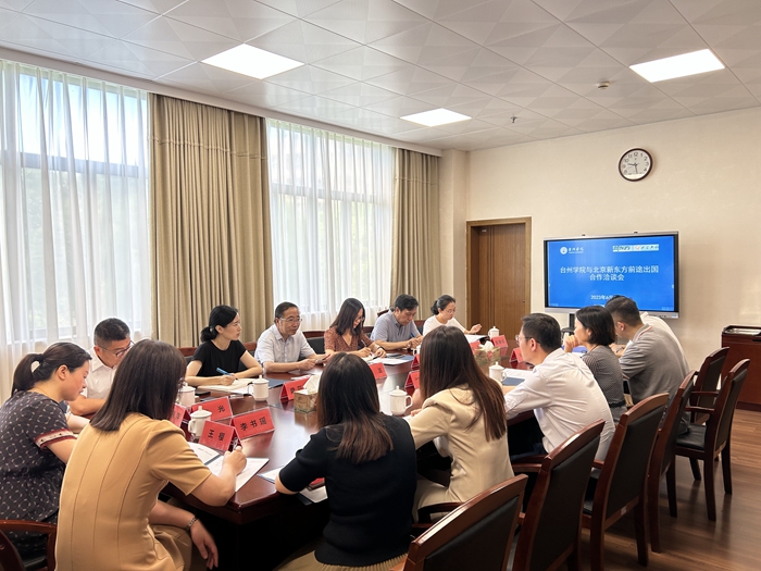宋丹代表新东方团队感谢我校盛情接待,表示新东方与台州学院前期合作密切,新东方与全球名校建立了很多合作与友好关系,致力于开发海外资源与合作项目,后续将加强与台州学院合作,根据台州学院办学情况匹配项目,帮助引进优质资源,助力台州学院大发展。