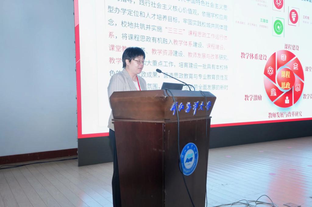 李钧敏详细阐述了我校“三协同、三融合、三机制”课程思政体系的具体内涵和实施路径。“三协同”即校地协同育人、全员协同育人、课程协同育人。“校地协同”主要是学校充分利用地方特色思政元素——大陈岛垦荒精神、和合文化等,将之植入教学,力求打造有台州学院特色的课程思政教学体系。“全员协同育人”是指学校建立党委统一领导、党政齐抓共管、教务部门牵头抓总、相关部门联动、院系落实推进、特色鲜明的课程思政建设工作格局,以学校层面课程思政工作专班、学院层面课程思政工作领导小组为抓手,着力推进实现“全员协同育人”。“课程协同育人”是指专业课程与通识课程的协同,通过成立课程思政教学研究中心,下设文史类、经管类、教育类、理工类、医学类、艺术类六个分中心,加强不同学科类别课程思政元素的挖掘与理论研究;督促学院以问题为导向,制订适应不同专业、不同课程特点的细化方案,确保课程思政门门覆盖。