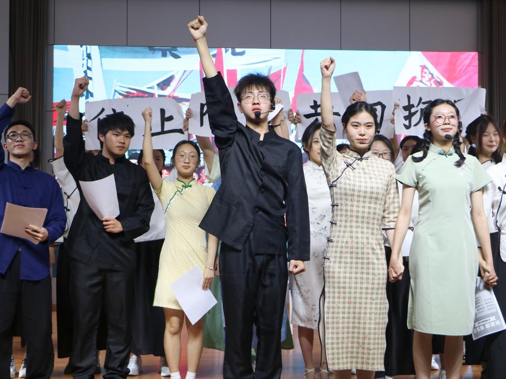 经过院赛选拔,椒江赛区和临海校区共有十五支队伍脱颖而出。决赛现场,各支参赛队伍热情饱满、神采奕奕,校团委文艺部带来的开场舞拉开了比赛的序幕。22音乐1班创意诗朗诵《风华不负,青春志梦》传达了“愿这华夏,世世星河不曾改”的美好愿景;22无人机12班的情景剧《错位时空》在时空转换中展现革命先辈重回华夏大陆,一览山河美景的动人场面;22电子34班带来的朗诵加合唱《月光下的中国》展现了一代代革命先烈热血奋斗的英雄事迹;21学前5班团支部带来的《大山里的一盏灯》用舞蹈讲述张桂梅让贫困家庭的女孩享受教育权利的动人故事;22思政3班团支部带来的《只问使命,不问东西》,通过情景剧和朗诵讲述大陈岛垦荒的故事,掷地有声地喊出了“请党放心,强国有我!”的口号……一个个精彩节目彰显了新时代青年的热情与活力,体现了基层团支部的强大凝聚力。最终21国贸3班团支部、22音乐1班团支部获得椒江校区一等奖,22思政3班团支部获得临海校区一等奖。