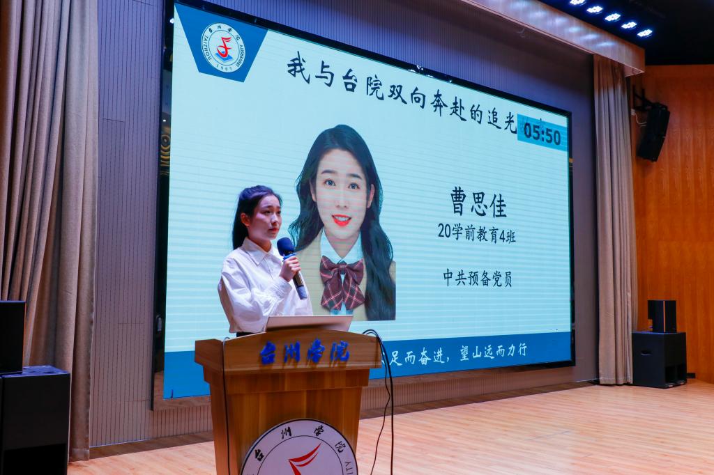 活动伊始,金先龙为2021年度“十佳大学生”颁发荣誉证书并合影留念。在评选会上,候选人们各显神通,展开激烈角逐,从学业生活、科研竞赛、志愿服务、社会实践等多个方面,结合制作精美的PPT,展示了自己精彩纷呈的大学生活。智能制造学院的张民杰秉持“张帆学海得金冠,民生为本人中杰”的座右铭,讲述“求学”与“做人”的青春故事;教师教育学院的曹思佳怀揣着教书育人的梦想,在圆梦之路上砥砺前行;建筑工程学院的余茜赛知心怀“深植家国情怀,拓展国际视野”的远大志向,勇做土木道路上的创新先锋;外国语学院的郑檬鹂从“Endeavor”“Energy” “Earnest”“Enthusiasm”四个方面,分享E路向潜的丰富经历;药学院的贺贤杰坚信“少年不惧岁月长,彼方尚有荣光在”,直面困难,不惧逆境,通过努力拼搏实现精彩蝶变;人文学院的夏雨诗保持青春的活力,挥洒奋斗的汗水,执着生命的追求,谱写多彩的人生诗篇;马克思主义学院的陈茗园围绕“看见光,追随光,成为光”,述说“追寻马列之光,迭代思政之梦”的奋斗历程……候选同学以自立自强、奋发向上的姿态诠释了新时代台院青年的精神风貌,他们丰富的大学经历与精彩的现场表现博得全场师生的阵阵掌声。