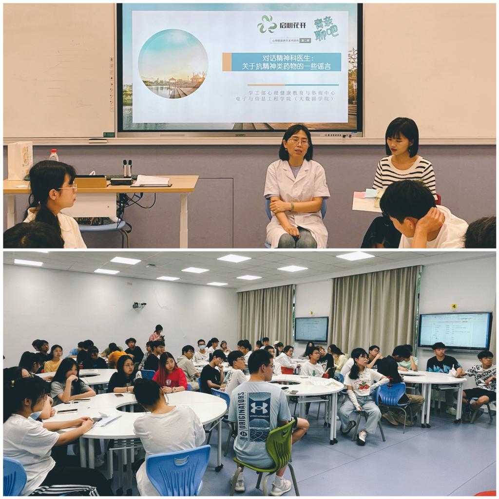 近年来,学校积极推进二级心理辅导站、辅导员工作室建设,加强心理服务下沉一线学生,创新专职心理咨询师网格化服务二级学院机制,着力探索心理健康工作新模式。本次活动邀请精神科医生走进二级学院,与同学们面对面交流,不仅增进了医校合作和交流,也进一步扩大了大学生心理健康教育的覆盖面、受益面,让同学们对“吃药那些事”有了更加准确的认识。