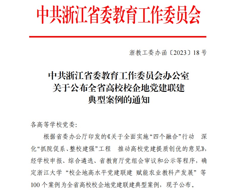 近日,中共浙江省委教育工委发布《关于公布全省高校校企地党建联建典型案例的通知》,我校“党建联建,点燃‘合聚变’红色引擎”“小兵大匠 e 路行”2个校企党建联建案例成功入选。