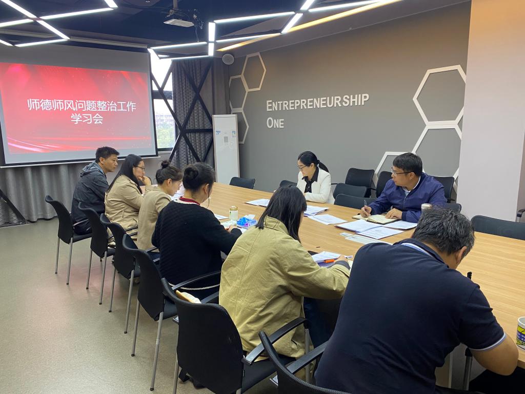 5月12日上午,创业学院召开师德师风问题整治工作学习会。全体教职工到会参加,会议由创业学院院长周瑶主持。