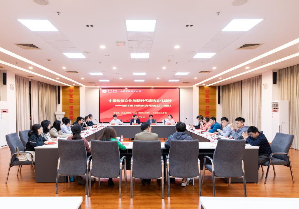 读书会在认真学习罗本琦著作《传统文化与马克思主义中国化》的基础上,围绕“中国传统文化与新时代廉洁文化建设”这一主题展开深入交流讨论。读书会专门邀请了马克思主义学院党总支书记盛跃明等六位专任老师分享解读。随后,每个参会人员结合工作实际和个人经历各抒己见、畅所欲言,大家都觉得收获满满。