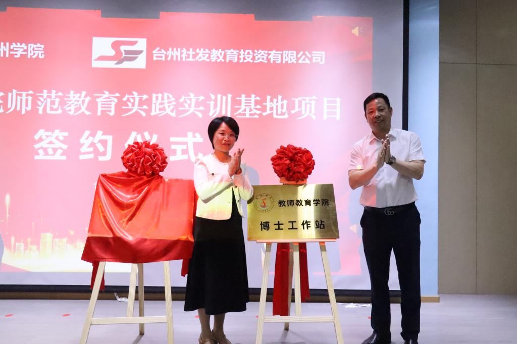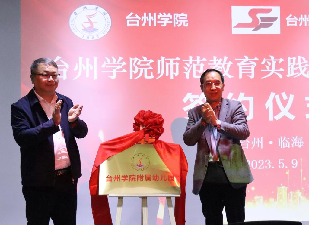 5月9日,台州学院师范教育实践实训基地项目合作签约仪式在临海市大孚幼儿园(台州学院附属幼儿园)顺利举行。台州学院党委委员、副校长胡韶光,台州市社发集团党委书记、董事长杨琳为 “台州学院附属幼儿园”揭牌,台州学院教师教育学院党委书记吴银银和市社发集团副总经理金圣善为“台州学院教师教育学院实践教学基地”“台州学院教师教育学院博士工作站”揭牌。台州社发教育投资有限公司总经理戴国平主持仪式。