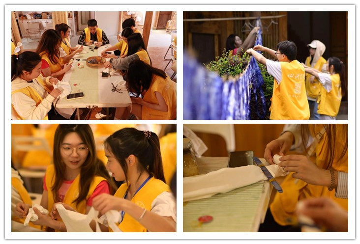 第二站——体验“非遗”扎染,感受“布”一样的精彩。感受土豆带来的快乐后,同学们来到乌岩头古村的见素艺术工坊,体验扎染教学。扎染在民间又称“撮缬”“撮晕缬”或 “撮花”,是中国民间传统而独特的染色工艺,也是国家级非物质文化遗产。”