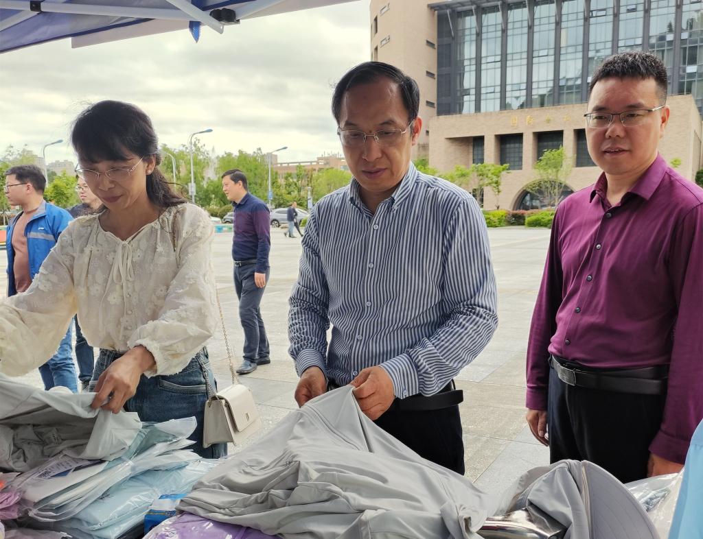 4月20日至21日,我校联合三门县委组织部、县供销合作社在椒江校区举办三门共富工坊专场展销会,8家共富工坊带着三门县农特产品参加展会。校党委委员、副校长胡韶光到现场指导。
