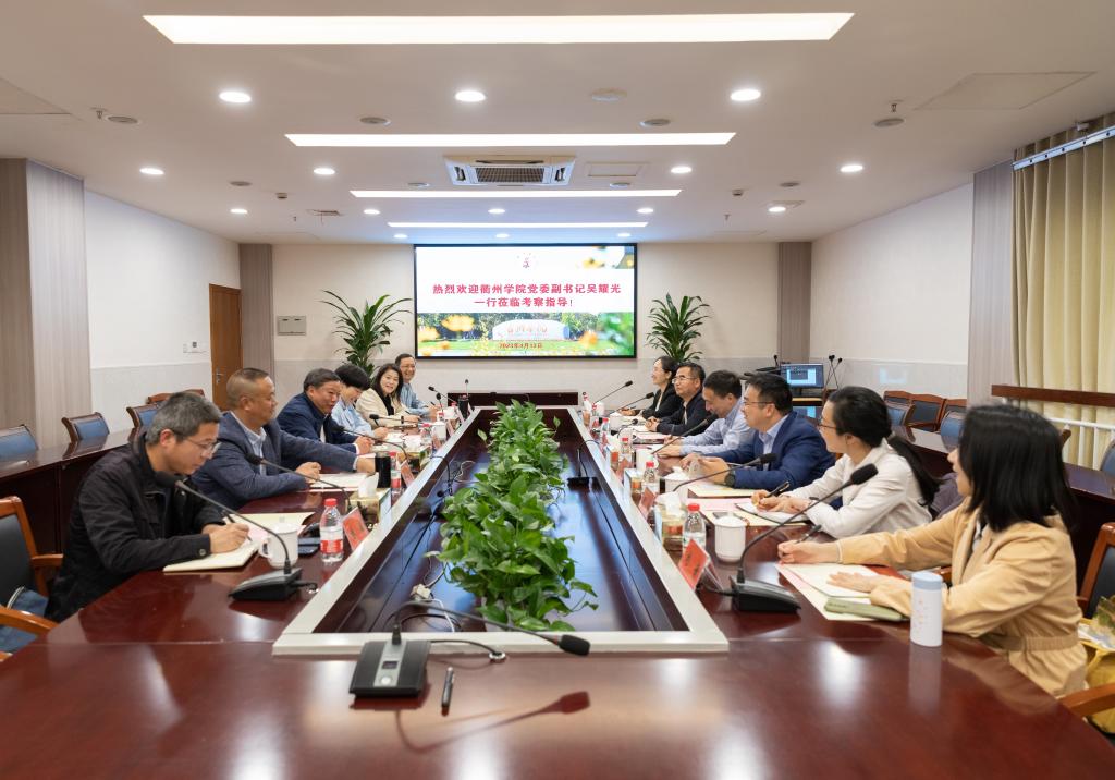 4月13日下午,衢州学院党委副书记吴耀光一行来校调研交流学生工作和平安校园建设情况。校党委副书记金先龙出席,学工部、保卫处以及相关二级学院负责人参加调研交流活动。