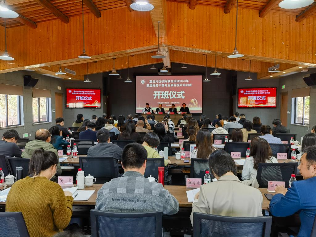 4月10日下午,在学院多功能厅举行开班仪式,校党委副书记潘通天出席并讲话,温州医科大学党委委员、组织部部长、统战部部长章成斌出席指导,中共台州市委党校校委委员丁云来致辞,台州科技职业学院党委副书记严钢主持。潘通天指出,此次培训顺利开展是所有高校共同努力的结果,培训采取专题辅导、经验交流、实地学习相结合的方式,既有党的最新理论学习,也有地方精神学习以及高校基层党建案例分享,同时根据中央最新精神设立了如何做好调查研究辅导课程,对于深入贯彻落实党的二十大精神,提高党务干部的综合素质和能力,提升党建工作整体水平,具有很好的推动意义。他强调,一是要提高认识、统一思想,充分认识举办此次培训班的重要意义,此次培训既是新时期加强党对学校工作全面领导的需要,也是扎实做好高校党建工作和推动事业发展的需要,更是提升党务干部工作能力的现实需要。二是要潜心修炼,担当作为,努力成为一名优秀的党务干部,要坚守理想,不断淬炼政治忠诚,坚定抓好党建工作的必胜信念;要胸怀全局,切实培养抓党建工作的宽广视野;要与时俱进,切实创新抓党建工作的方式方法。三是要集中精力、珍惜时间,严肃纪律认真学,联系实际思考学,注重运用扎实学,努力做到学有所获、学有所成、学有所用。