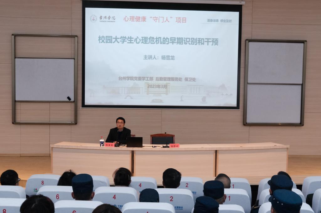 为进一步健全心理健康四级网络机制,提高校园心理危机干预工作的针对性、实效性。学校于3月31日分校区开展宿管、安保人员校园心理危机干预专题培训,浙江师范大学外国语学院党委副书记杨雪龙应邀主讲。学工部、后勤处、保卫处相关领导及全体宿管、安保人员参加本次培训,心理中心主任金彩云主持培训。