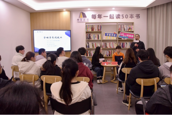 为进一步提高同学们对职场生活的认知,3月29日晚上,校就业服务中心在椒江校区心湖书吧举办“学姐学长说就业”活动。2021届机械设计制造及其自动化专业毕业生、现任沃尔沃汽车台州工厂设备维护工程师胡洋帆应邀担任嘉宾,校就业服务中心副主任马斌及30多位学生参加本次活动。