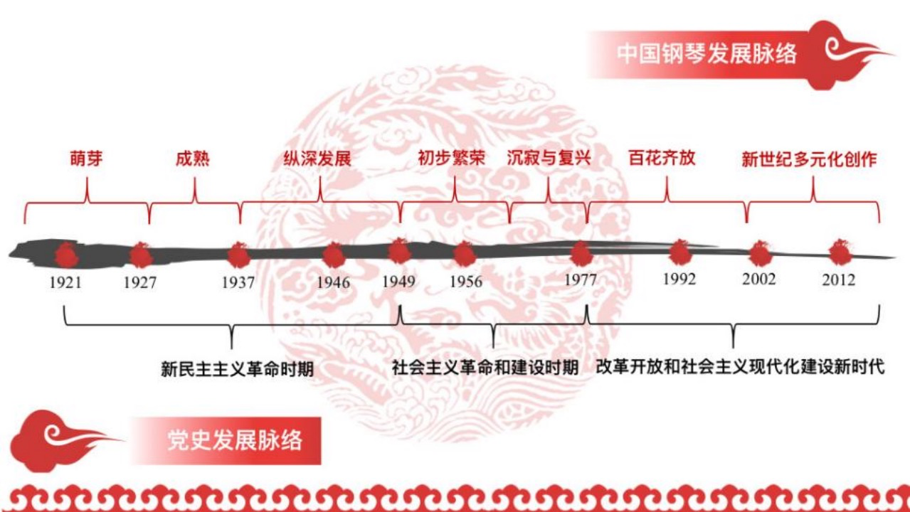 《黑白键上的中国梦》是一门音乐鉴赏类通识课程。获奖微课选自课程中的概述部分,章节名称为“黑白键上学党史”,概述章节以“破晓新声—新民主主义革命时期”“乐海春潮—社会主义革命和建设时期”“盛世华章—改革开放和社会主义现代化建设新时代”三个课时,完整讲述了百年来,我们胸怀宽广的大国对于西方乐器和音乐文化的接纳与吸收,在创作实践中对于西方理论技法的借鉴和中西音乐语汇的交融,在专业化发展和思想解放的推动下,不忘寻根,创新出具有中国特色钢琴音乐的发展历程。