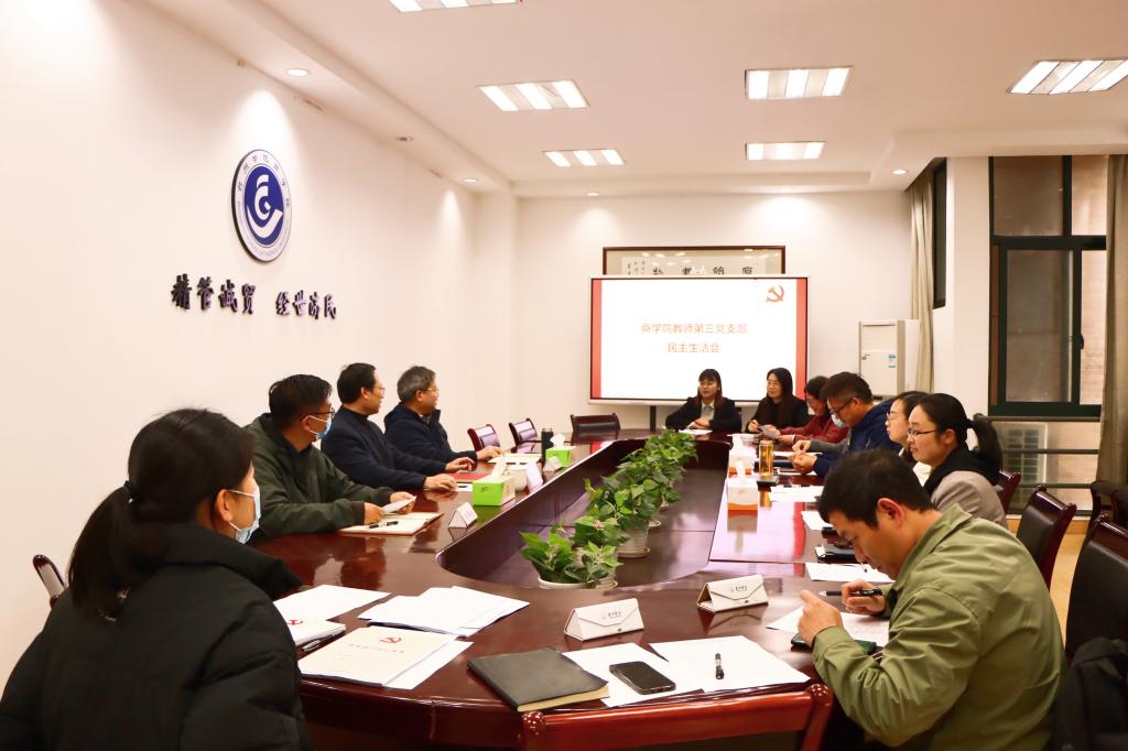 3月23日下午,商学院教师第三党支部召开2022年度组织生活会,校党委副书记潘通天到会指导,商学院党委书记周全宝出席,支部全体党员参加,支部书记陈斌岚主持会议。
