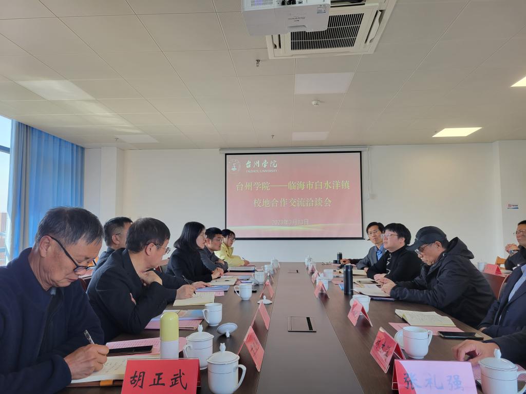 3月13日上午,临海市白水洋镇党委书记程卫国一行来校考察校地合作事项。党委委员、副校长、台州市博士联谊会理事长李钧敏参加座谈会。