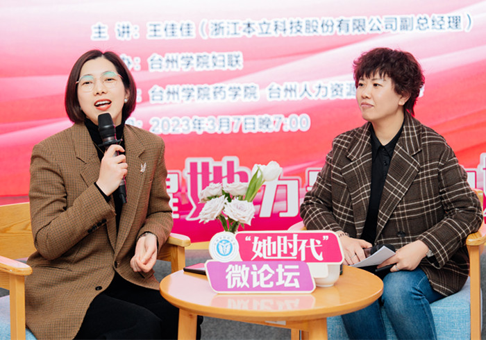 王佳佳作为台州医药企业的优秀女性代表,围绕“职业选择与人生价值”“如何打破职业性别刻板印象”等问题,与在场师生交流畅谈,分享女性职场经历,传递女性职场力量,共话女性时代发展。