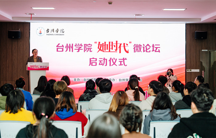 台州学院“她时代”微论坛是由台州学院妇联主办,台州学院药学院、台州市人力资源服务协会联合承办的一个对话交流平台,邀请优秀女性代表与广大学生面对面畅谈交流,聆听她们的动人故事,感悟她们自信、独立、坚强的女性力量,从而“觉醒她力量,拥抱她时代。”