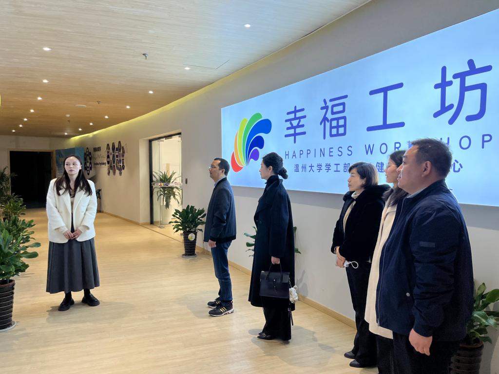 在温州大学,考察组参观了校史博物馆、发绣馆、幸福工坊等地。交流会上,温州大学学工部副部长张朝辉对学校辅导员队伍管理模式、培养发展、考核奖励等内容展开详细说明;招生就业处副处长魏晓晓围绕就业全员推进、就业质量提升、就业精准帮扶、就业服务优化、留温筑温促进等五大工程对学校学生就业工作展开详细介绍。“职得”生涯工作室、辅导员素质能力提升工作室介绍了工作室开展情况。双方就辅导员工作室建设存在问题、辅导员发展、就业困难等方面内容进行了探讨与交流。