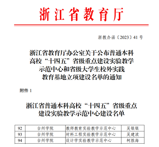 近日,省教育厅公布了 “十四五”省级重点建设实验教学示范中心立项建设名单,我校“教师教育实验教学示范中心”“材料工程实验教学示范中心”及“设计学实验教学示范中心”名列其中。