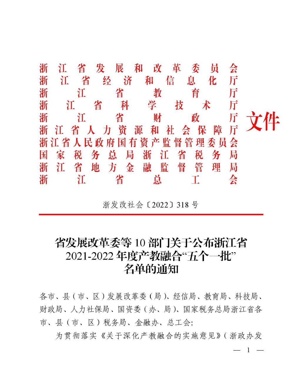近日,省发展改革委等10部门发文公布浙江省2021-2022年度产教融合“五个一批”名单的通知,我校牵头成立的长三角(台州)医药大健康产教融合联盟成功入选。