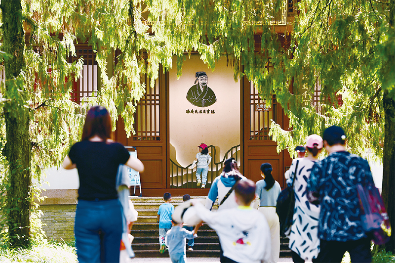 2021年3月,习近平总书记在福建考察期间专程来到武夷山朱熹园,了解朱熹生平及理学研究等情况,指出要特别重视挖掘中华五千年文明中的精华,把弘扬优秀传统文化同马克思主义立场观点方法结合起来,坚定不移走中国特色社会主义道路。图为游客参观位于福建武夷山朱熹园的武夷精舍(2022年6月6日摄)。 新华社记者 姜克红/摄
