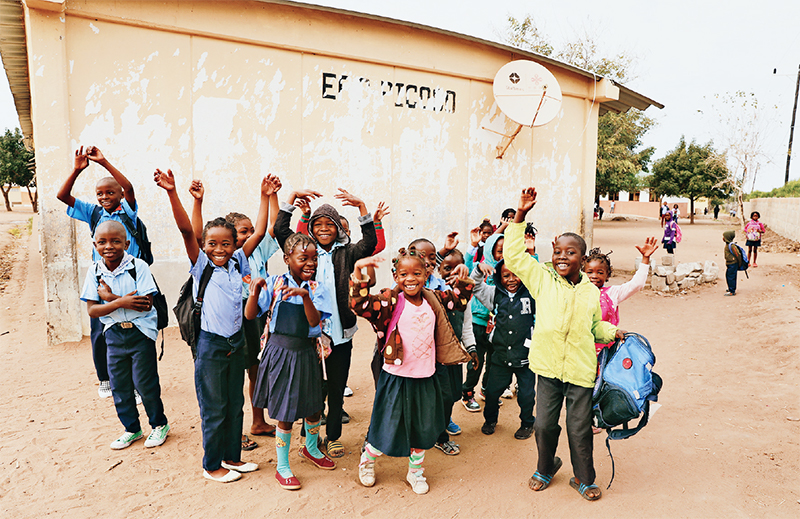 中国援非“万村通”项目旨在为上万个偏远村庄接入卫星电视信号,助力非洲民众联通世界,是中非合作的重要举措和共建“一带一路”民心相通的重要成果。该项目2018年在莫桑比克启动,为该国1000个村落、2万户家庭和3000个公共场所安装卫星电视设备,提供电视信号和节目,覆盖农村人口达250万。图为2023年7月25日,莫桑比克马普托省皮科科村学校的孩子们,站在装有中国援助的卫星电视接收天线的房屋前。 新华社记者 董江辉/摄