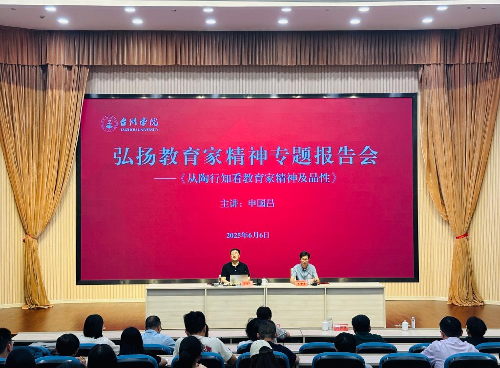 为深入贯彻落实《中共中央 国务院关于弘扬教育家精神 加强新时代高素质专业化教师队伍建设的意见》精神,引导广大教职工坚定心有大我、至诚报国的理想信念,陶冶言为士则、行为世范的道德情操,涵养启智润心、因材施教的育人智慧,6月6日上午,在椒江校区国际会议厅举办“弘扬教育家精神”主题报告会,特邀华中师范大学二级教授、博士生导师申国昌老师作《从陶行知看教育家精神及品性》的专题报告。校党委委员、组织部部长、统战部部长吴银银出席,校工会常务副主席、教师工作部部长王金宝主持,全校教职工代表及师范专业学生代表170余人参加学习。