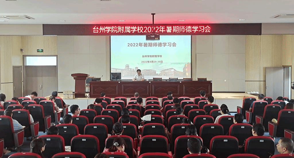 “树师德,立师风”,2022学年开学前夕,台州学院附属学校在报告厅召开暑期师德学习会,全体教工在林久杏校长、陈于清书记的带领下,深入开展了内容丰富,形式多样的师德师风学习活动。